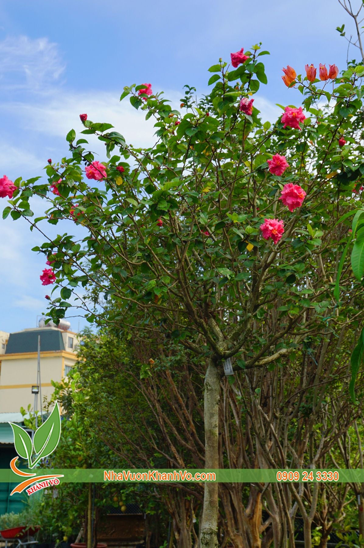 Cây Hoa Râm Bụt Kép Thái Hồng 2m2 Đang Rộ Hoa